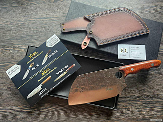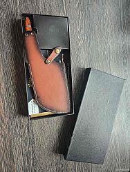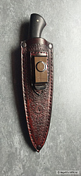 Čepeľ je Elmax, rúčka je slivka, koža a nerez, puzdro je koža, namorená moruša a nerez.