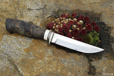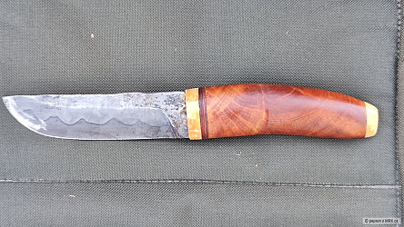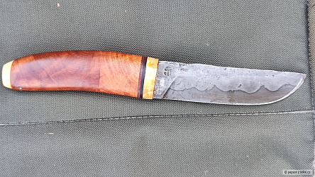 Čepel leptaná Lauri Laplander PT 145mm, na ručce česká slonovina (rozuměj hovězí kost :-)) ), bocote a stabilizovaný buk prolezlý houbou. Můj oblíbený jednoduchý severský styl.
