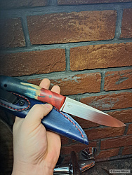 Dneska dorazil, nákup tady na bazaru od člena Mrku pod přezdívkou Eruve,tímto mu ještě jednou děkuji.Dvě pouzdra, čepel Elmax,střenka zřejmě mořené stabilizované dřevo, pěkná kudla, dobře se drží, nožíř odvedl pěknou práci.