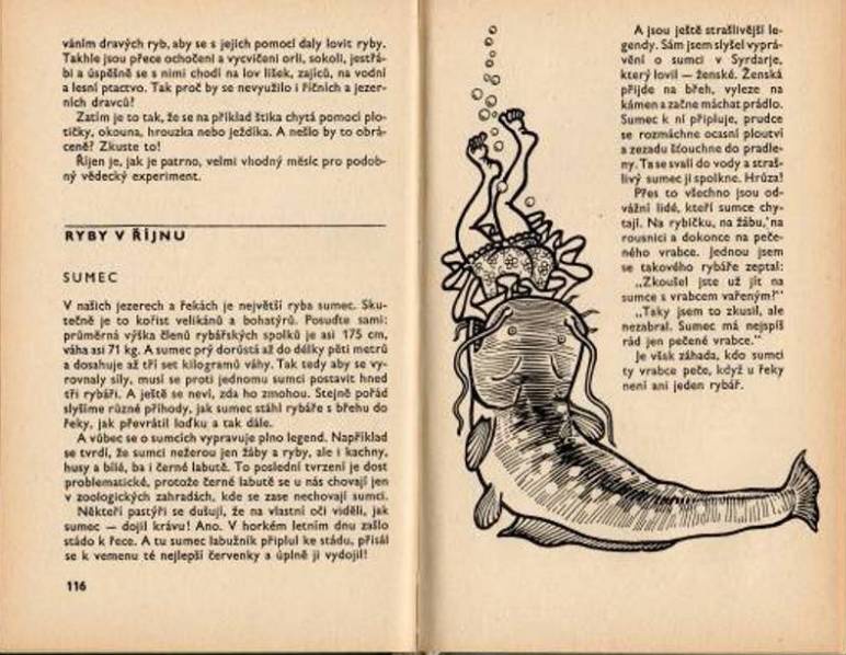 Rybářův rok - Manuil Semjonov 1967 úžasná knížečka o rybách převážně nevážně, s ilustracemi od Neprakty