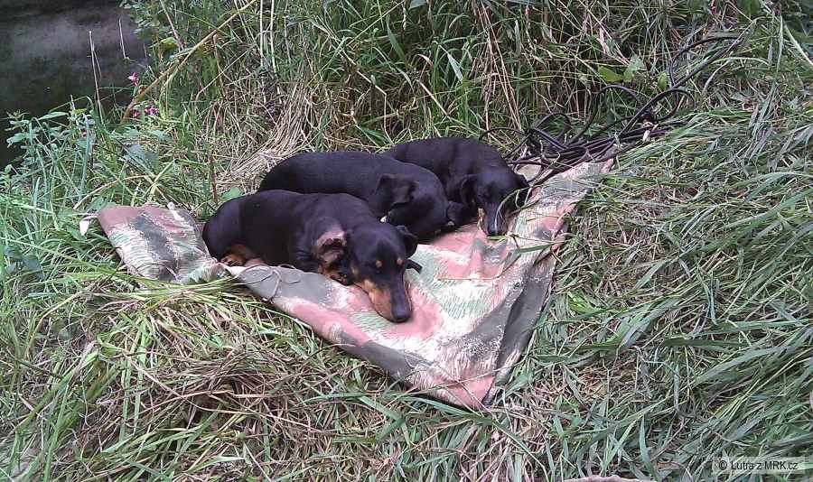Já chodím někdy i se třemi jezevčicemi, teď ne, páč mi jednu na podzim zabila bachyně. Většinou chodí na volno, ale znají povel "za paty". Pak jde někdo se psem - většinou větším- na joju a hrozně se diví když se ten jeho mamlas motá mezi ně, že občas nějakou slízne a když mu říkám aby si psa držel. Lidi co spolíhaj na ty joja, který bych já ze zákona zakázal, nedokážou pochopit, že povel je někdy víc než špagát.
