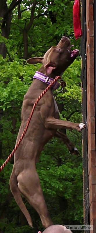 A byl přímým účastníkem zrodu nového českého rekordu ve Wall climbing kdy pes dokázal chytit peška ve výšce 375 cm !!! Musím dodat, že u fen padl rekord taky výškou 350 cm.