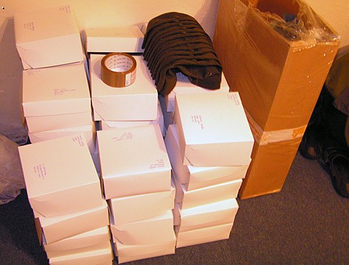 tak dneska jsme stihli vyplnit podaci listky, popsat krabice a slozit je, zitra roztridime ksiltovky do krabic, zalepime a posleme...