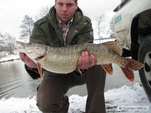 Jedna cca 65 má v zadní části těla vytlačený čelisti od štiky, která má určitě o dost větší držku, než naše dnešní největší ulovená...