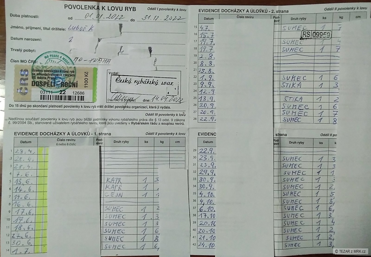 Průzkum. Kolik si za sezónu na svazovou povolenku odnesete ryb? Nebudeme řešit nástražní rybky, plotici pro kocoura, tři cejny na salát. Prosím, pravdu. Uvidíme, jak na tom jsme. Takový malý průzkum. Vezmeme v úvahu řekněme "velké ryby k obědu". Kapr, Amur, klidně metrový bolen, sumec, štika atd. Prostě ryby co chtějí lovit všichni. Schválně nepíšu "ušlechtilých, vyjmenovaných", ale prostě velké ryby na řízky, do udírny,