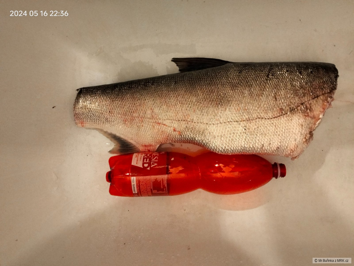 tak tady jsou další fotky. Ryba měla 88cm 9kg, ale polovina váhy je hlava a vnitřnosti. Nemá moc masa přes žebra. Z toho co je na žebrech jsem udělal prsty. Zbytek nasolen na uzení.