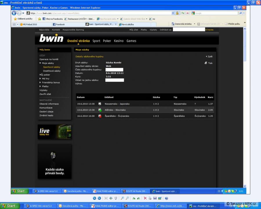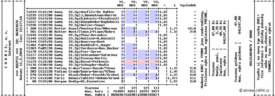 Roh1!ck >> tak já sázím nejvíc na tenis ... můj sponzor k rybářským potřebám:)) letos můj největší dojeb:(