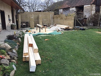 Mám dozděnou část stavby, která měla být z KB bloku a včera jsem dovezl dřevo na "krov".