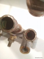 Potrubí CU DN54. Všechno bude zalisovaný za studena. Momentálně pájená měď. je to asi 7 let stará rekonstrukce.......a pak přej že je měď na furt...:-))))