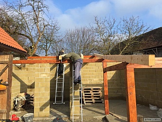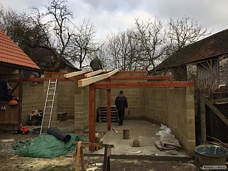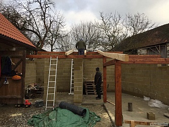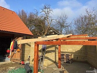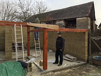 Ta poslední fotka je ze dneška, kdy jsem tam hodil na zkoušku pár kamenů zámkovky. Teda řeknu vám, že jsem si vybral pěknou debilitu a ne zámkovku... Za prvé jsou ty velké kameny těžké jak hovado a za druhé, poskládat to tak, aby tam nebylo moc průběžných spár a ještě k tomu nevycházely debilní dořezy je pěknej vopruz... Nějak to dopadne a až se to zašlape (což nebude trvat moc dlouho, protože jak je všude mokro a bláto, tak už na tom kousku mám samozřejmě x ťápot od dětí, ode mě a od kocoura... :-))