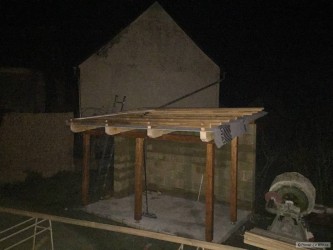 Dneska bylo trochu času, ak jsem se zase asi na tři hoďky pustil do toho kotce... Dal jsem přední rám a dvě krokve... Za chvilku bydlí... 😀