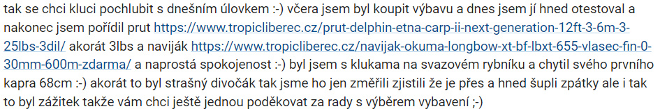 napr tomuto som sa celkom potesil/ze ma az dojalo, ze my tu riesime taketo veci, a cloveka potesi aj obycajna vec a radost z ulovku .. :)
