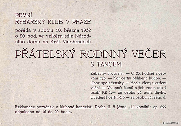 Dopisnice Prvního rybářského klubu - dostati lze po 3 krejcarech. U p. Boh. Vaňka, Praha 411- I