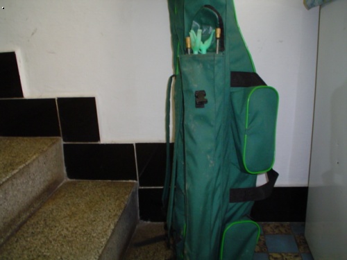 Ze starých jeansů jsem ustříhnul nohavici a na jednom konci (na tom, co jsem stříhal) ji zašil. na druhém mám přišitý provázek na utažení. dám do toho vidličky i feedrovou trojnožku a propíchnout se to nedá ani náhodou.