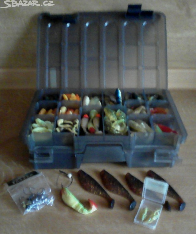 Nabízím dvojitý kufřík a spoustu gum.nástrah,asi 100ks,nepoužívané..+ 3 woblery k tomu,vše,jak je na fotkách,cena za vše-500kč Kvalitní tašku přes rameno a k tomu kufřík na rybářské drobnosti,vejde do tašky,cena-200kč 2x ESOX Signalizátor BBB+ pouzdra,jen 2x u vody,jako nové bez vady... Červená paměťová LED 20 sekund. Modrá záběrová LED. Ovládání hlasitosti. Ovládání výšky tónu. Napájení baterie 1x 9V. Rozměry: 4,8 x 10 x 4 cm-400 kč za oba