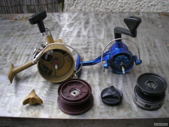 Bajonetové uchycení cívky - snímá se a nasazuje pootočením. Na obou cívkách, je navinutý nový vlasec 0,30. Cena 490,- osobně nebo + pošta