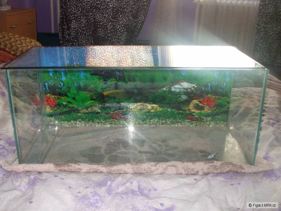 Mám tady akvárko plně funkční měl jsem tam nástražky,délka 60cm výška a šířka je 25cm nechám i pozadí je se skleněným deklem jen osobní převzetí v Karviné.