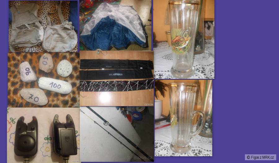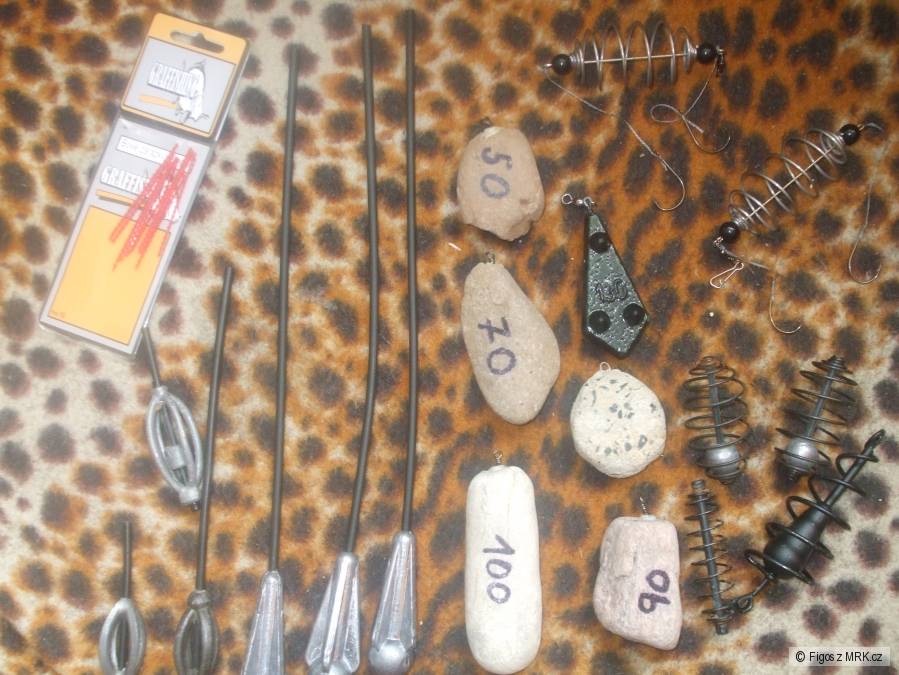 Je tam 2x somro-malá polní,kamenné zátěže,3x olovo průjezdné,část stanu,krygl s motivem kapra,2x obaly od feedru 360cm...