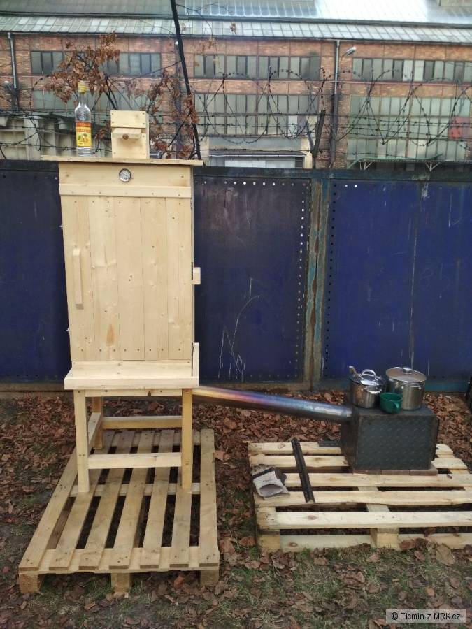 Postavil jsem si s kamarádem. Dá se celá rozebrat na podstavec, věnec, boudu, kouřovod s rozptylovačem kouře, topeniště a odnést do sklepa:) Bydlíme v bytě, tak proto:)) Už jsme i udili a povedlo se!