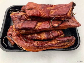 Zkoušel jsem i sušenou krkovici a bůček. Dnes jsem zakrojil. uzené to není, ale snad jsem tím, zde nepohoršil. Těch šest týdnů bylo opravdu dlouhých.))