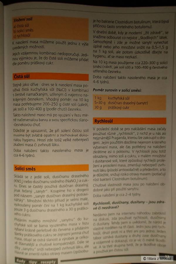 tuzemak >> Hlavně už jsem si přečetl něco o nasolování, druhy nasolování atd. Jako ta praganda není špatná, ale asi taky není úplně zdravá, i když tady to popisuje tak, že sice je jakoby škodlivá, ale v tak malém množství, že když budě někdo venku, nadýchá se více škodlivin jak po požití toho uzeného. .-)
