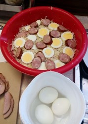 srobik >> "Svěcene" - uzene,klobás a vejce prokládané vrstvou křenu a zalete okyselenym uzenym vývarem