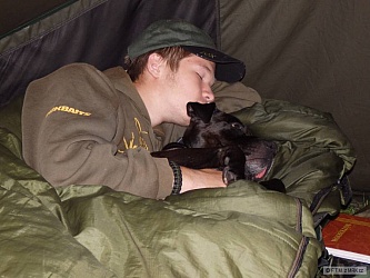 Tak ten můj vlk roste jako z vody a celkem rychle se učí rybařit.Na cinkání rolničky štěká a tak mám luxusní příposlech bez baterek-:)))