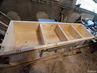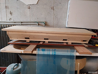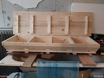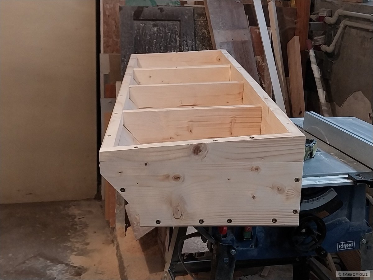 Tak už se to rýsuje, ještě natřít, zasilikonovat někde malou spáru a dát na střechu ipu a je to , Rorýs může začít bydlet .-))) V předu výška cca 13cm. vzadu 16cm. vnitřek mezi přepážkami je cca 30x30cm .-))