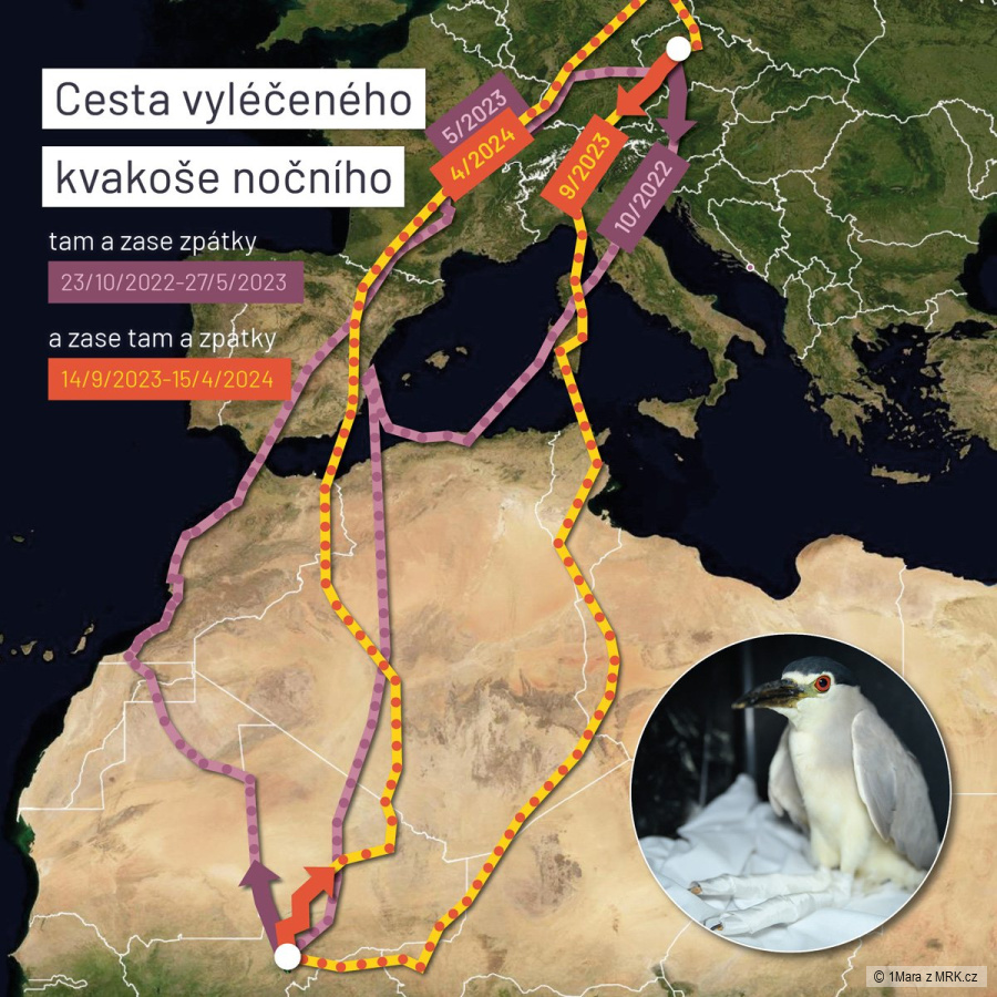 ❤ Děkujeme ornitologům, že díky nim můžeme sledovat kvakošovy cesty.