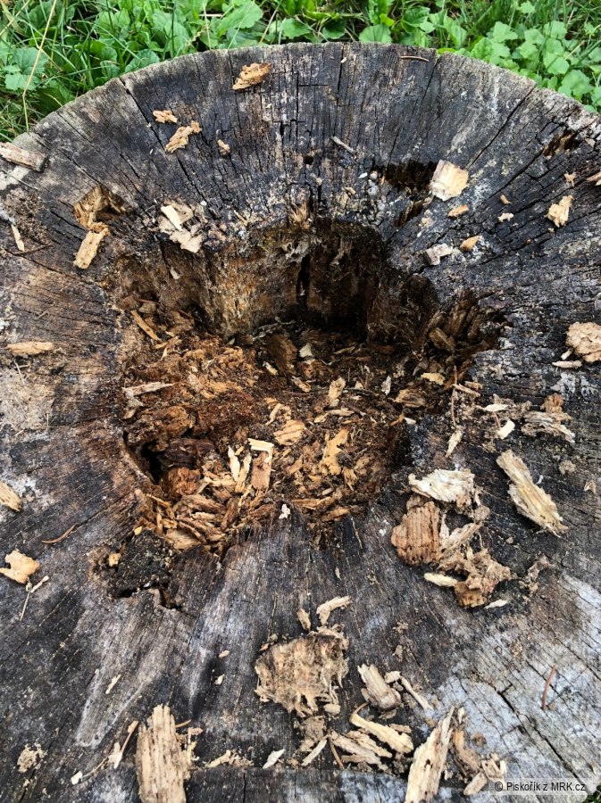 A u chaty už se mi žluna naučila chodit loupat perníček….ale spíš to odnesou mravenci, larvy pilun jsou povětšinou v bezpečnější části pařezu dole…;o)