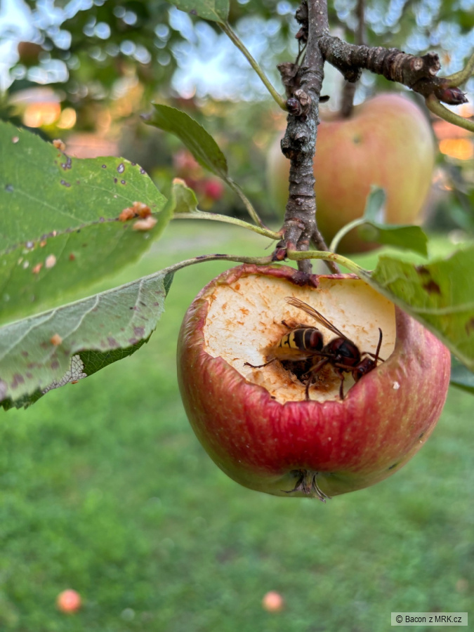 Bacon >> tak to je stejný jak u nás. Letos mi poprvé jabloně po odkvětu udržely plody, pak přišel jarní mráz a skoro vše spadlo. Zůstalo pár jablíček, před měsícem kroupy jak kráva a zůstaly 3 jablíčka a ty mi tímto způsobem sežraly vosy, panenská úroda opět v hajzlu, zatím jsem ze 25 stromů a 15 keřů neochutnal ani prd, o vše se postará les, se škodolibou radostí....prý budu bydlet na hájovně v lese v souladu s přírodou. Už mne ty její rozmary pěkně serou 😁