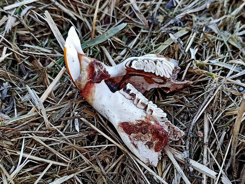 Na podzim se nám na obecní rybník nastěhovala vydra. Onehdy jsem na procházce se psem za dědinou našel ocas z nutrie, včera pes asi 500 m odsud vyčenichal tento zbytek chrupu. Jestli to mají na svědomí vydry netuším, ale moc mě jiný predátor nenapadá.