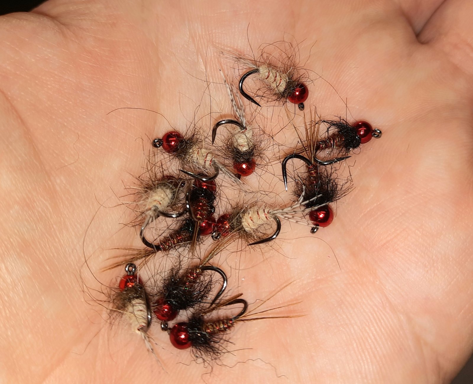 čolek01 >> tu světlou s červenou hlavičkou z korálku a červeným drátkem mi kdysi parádně brali potočáci a lipani, tak jsem si na ni vzpomněl a udělal ji s tg hlavičkou na zkoušku, s bažantem už je jen modifikace na vyzkoušení, když jsem jsem byl v tom vázání :-D