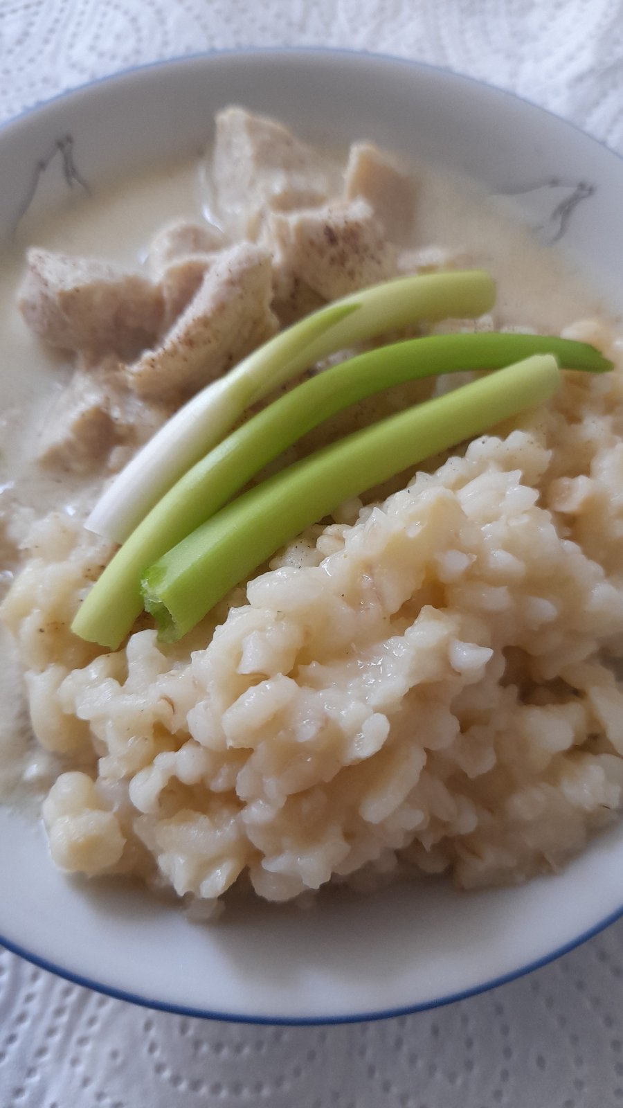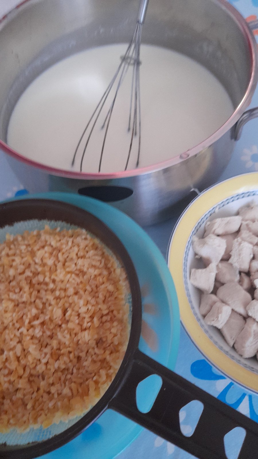 Jogurtová omáčka curry mletý 🧄 kousky kuřecí, hrubý burgul - dneska domácí plotna, taková turecko ☪ orientální delikatesa 👌, česnekový kyselý nádech 👂