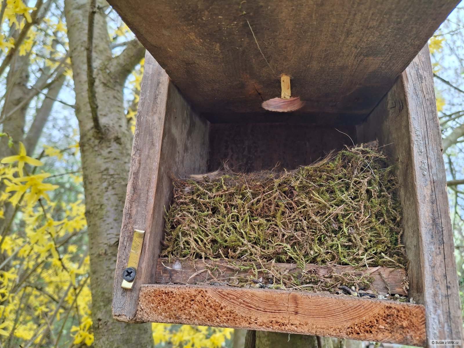 Tak jsem na statku. 1 plech, oběd jsem si přivezl. Ze 4 budek zatím jen 1 tahle obsazená. Tedy dělají si hnízdo . V Žabáku tak o 60 cm vody méně ve sloupci. Dám ještě plech a hodím tam vrš
