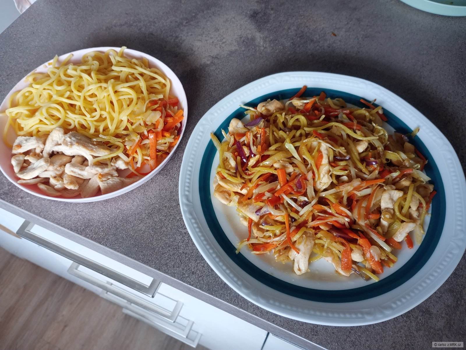 Já dnes zkusil ty smažený nudle s kuřecím masem, podle Plavana a nemělo to chybu, udělal jsem ještě odlehčenou verzi pro prcka.