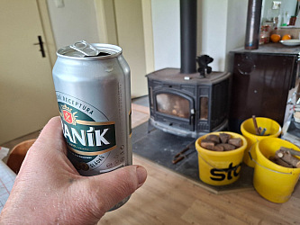 V chalupě 17 venku to je podobný. Naplnil jsem krbovky, třeba později škrtnu. A teď dám pár zásobníků na jasan terče