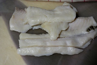Po cca 3 dnech filety zbavíme soli důkladným propláchnutím pod studenou tekoucí vodu.