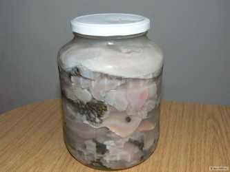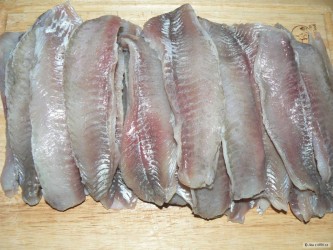 Očištěné ryby nafiletujeme, vložíme do sklenice, každou vrstvu filetů nasolíme.