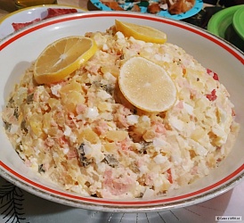 Jisté je jen, že recept se dá najít v kuchařkách i na internetu a pokaždé dělaný trošku jinak, někdy s kuřetem, jindy s jiným masem……. a dalšími surovinami, o kterých není v původním receptu zmínka.