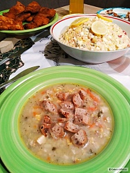 Trampové z osady Bílý zajíc - http://www.bilyzajic.com/index_publik_11.html - použili v receptu na rozdíl od běžně používaného kuřete rybu – cejna.