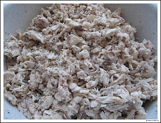 Ryby vyvrhneme a očistíme, kůži ponecháme, prosolíme a 24 hod necháme proležet v chladu. Pak dáme do varu vodu, ve které ryby povaříme tak dlouho, až jde maso od kostí. Masou vyloupeme a vykostíme - přehlédnuté kosti zachytí nebo rozemele mlýnek na maso.