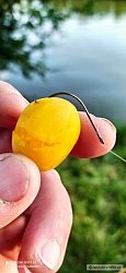 Lauri >> Propíchnu větším háčkem skrz celou mirabelku, vyvedu ven, háček otočím a špičku vrátím zpět dovnitř, ale musíš ho dát mimo pecku, jen pod slupku. Háček není vůbec vidět, jen z mirabelky vychází návazec.