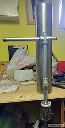 Trubka je tenkostenna z nejakeho vesaku, prumer 20mm. Foukaci trubicka je z anteny, da se do ni zastrcit akvarijni hadicka. Foukam do ni akvarijnim vzduchovadlem. V te velke trubce je provrtana kulatina o delce cca 20mm, ktera je v ni zastrcena v podstate napevno. Dira na foukaci trubicku je treba udelat s vuli, nebot trubicka se posouva a ladi se tim vykon. Nekde je to i popisovano z hlediska fyziky, ale nemohu to najit. V te 20mm trubce je udelana dira cca 50x10mm pro nasavani koure. Delka diry je udelana dle prumeru plechovky tak, aby byl na kazde strane aspon 1cm.