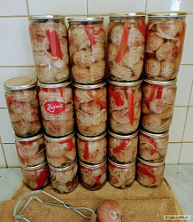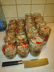 Martin N. >> Ryby očistím, nasolím a zaliju nálevem ocet 3díly a voda 1 díl, nechám odležet aby změkly kosti asi 24 - 48 hodin, podle toho kolik dáš soli, já to dělám odhadem, hlavně ryby nasmí být moc měkké, potom uvařím nálev, na litr vody 3 dcl octa, nové koř, bobkový list nechám vychladnout a vrstvím s cibulí, červenou paprikou, můžeš i steril.okurku a každou vrstvu opepřím,ještě osolím a zakápnu olejem, pak zaliju vychl. nál. a nechám 3-5 dní, pak se to sežere, zbydou jen kuličky.