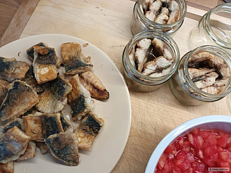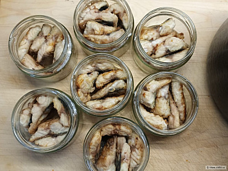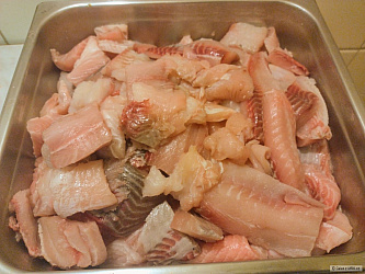 Ryby vyvrhneme a očistíme, kůži ponecháme, prosolíme a 24 hod necháme proležet v chladu. Pak dáme do varu vodu, ve které ryby povaříme tak dlouho, až jde maso od kostí. Masou vyloupeme a vykostíme - přehlédnuté kosti zachytí nebo rozemele mlýnek na maso.