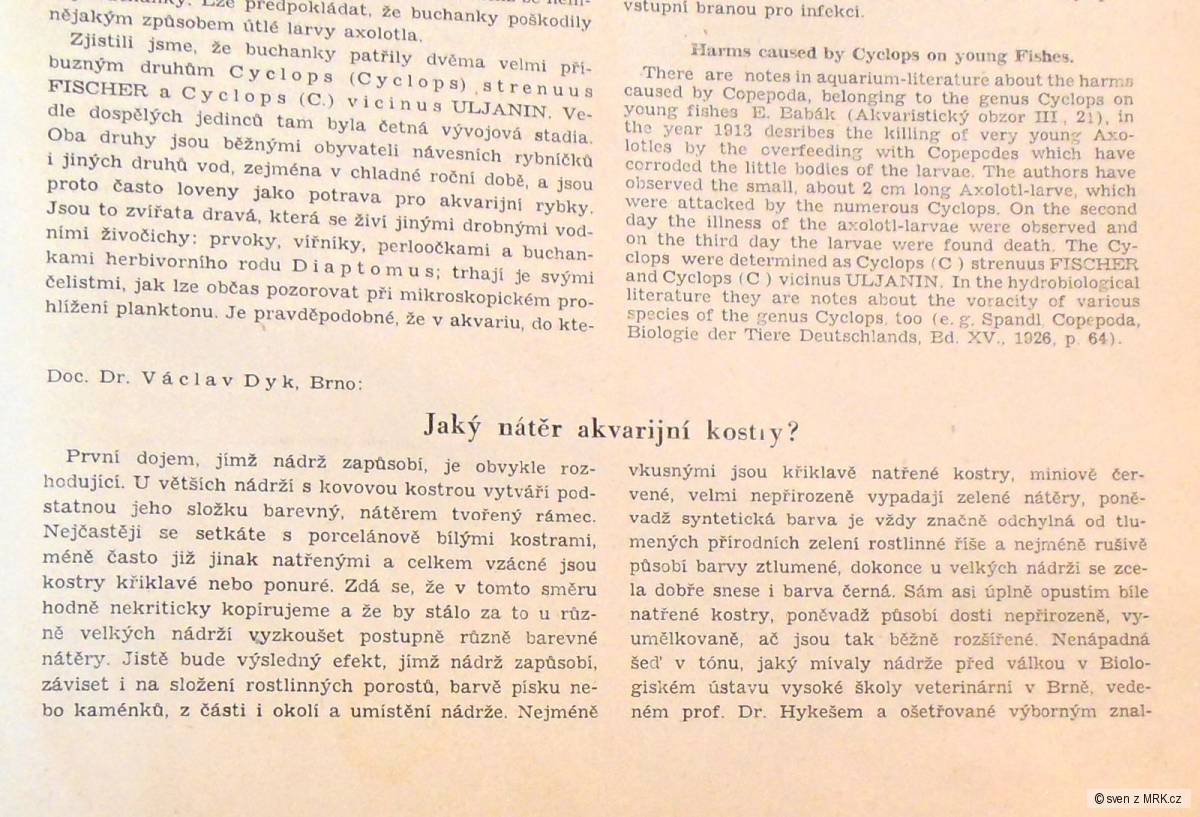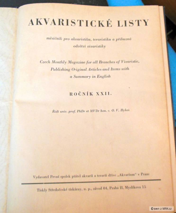 Jestli máš zájem, mohu Ti nezištně věnovat dva svázané, poválečné ročníky, Prvního spolku přátel akvarií a terárií v Praze.