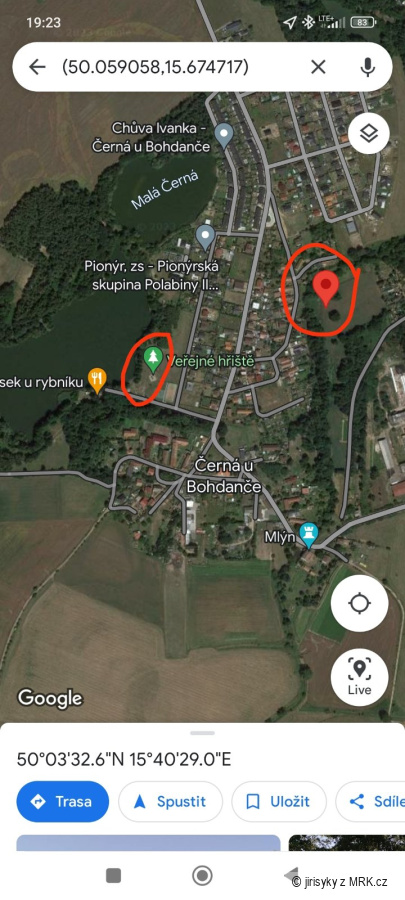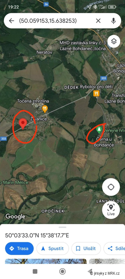 U veřejného hřiště jsem byl na rybách, ale dle fotky a údajů z nich jsem byl dle červeného bodu.