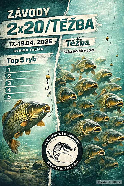 Srdečně Vás zvu na rybářské závody 2×20 hodin, které se uskuteční od Pátku 17-18-19.4 2026