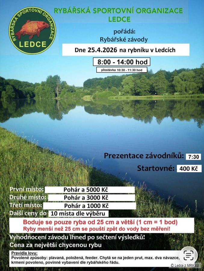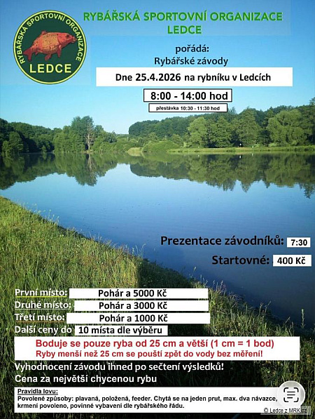 Zveme Vás na tradiční jarní rybářské závody na rybníku v Ledcích u Plzně.